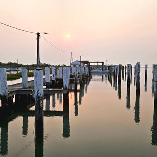 In Deltaville VA, I found my road! Neptune Avenue (Neptune is my road name with the Guardian's of the Children Belle City) We walked to a quick shop for a few supplies and headed back to the boat. The next day, we stopped at Tangier Island, a very small fishing village where we walked around and ate at the local cafe. We are starting to notice haze from Canadian wildfires and found lots of cats, cemeteries in people's yards. It was a VERY rustic marina with very short piers, making it hard to get on and off the boats.