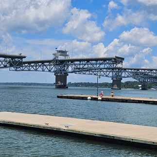 Monday, June 5 we waved goodbye to Chesapeake Yacht Basin and locked through our last lock until we get on the Erie Canal. Unfortunately, the train bridge we needed to open was broken, but after about a 1 hour delay got through and arrived at Riverwalk Landing Pier. We walked Yorktown, visited their Revolutionary War museum and were passed by the destroyer USS Stout. Tuesday, we took the free trolley to Yorktown battlefield, toured the battlefield museum, and I found our grandson an awesome pirate ship kite.