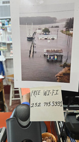 Alligator River Marina was the first marina/gas station that we have tied up at. We left early to beat a storm and we doubled up our lines before it hit late afternoon with 65 mph wind gusts and sheets of rain! The next day we had two of the roughest hours so far on the trip with six and eight foot waves the whole way across Abermarle sound. Unfortunately one of our port holes was not clamped down properly and we ended up with a closet of wet clothes which had to be hung all over the boat to dry.
