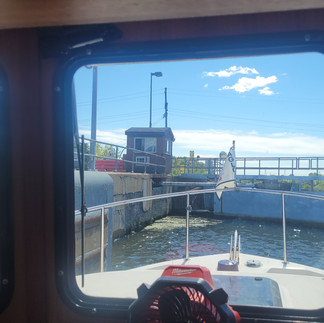 The locks are amazing. You wait for the green light, then pull in and so far we have tied to floating bollards, I have one pictured above. Then they close the gates and pump the water down. We dropped 40 feet in only a few minutes. Sometimes if there are lots of boats, you need to raft off of each other because there are not enough bollards to go around. We have had several locks where boats were tied next to each other or "rafted up" three deep so we could fit everyone in.