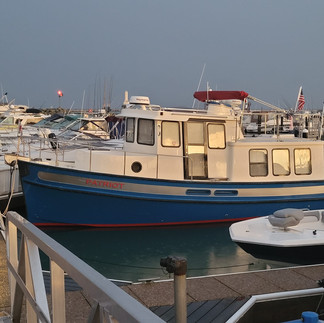 On July 23, we took Patriot down to Milwaukee to see the Air and Water show. We had several friends onboard including Fred and Kathy and one of my friends, Ester. We picked up everyone up at the South Shore boat landing and then rafted up with other friends at McKinley Marina aboard San Souici, a 32 foot long pilothouse ketch.