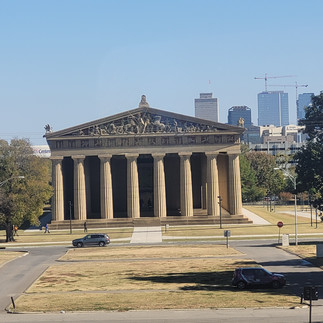 On Wednesday we decided to take a trolley tour of Nashville with our friends Glenn and Carol from Encore. The trolley made 13 stops and as they drove around Nashville the drivers maintained a running history. One really interesting thing that I never knew was that Nashville is also known as the "Athens of the South, right down to a copy of the Greek Parthenon complete with a 42 foot tall statue of Athena (The largest indoor statue in the US) holding a 6 foot statue of the Greek God Nike in her hand. Nashville got this nickname because of their dedication to education through their colleges and universities.